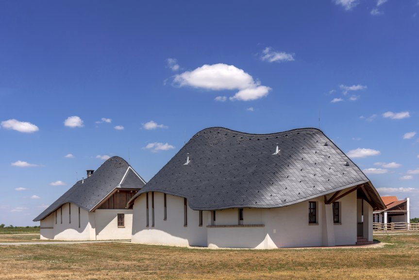 Atrodo, kad šis antropomorfinis ir zoomorfinis kompleksas, sukurtas pilkiesiems galvijams ir buivolams, iškilo iš žemės. Pagrindinis įėjimas simbolizuoja du stumbrus, o arklidžių išplanavimas primena pilką galvijų ragą. „Pusztos“ kompleksas atrodo taip, tarsi jis ten buvo visada.