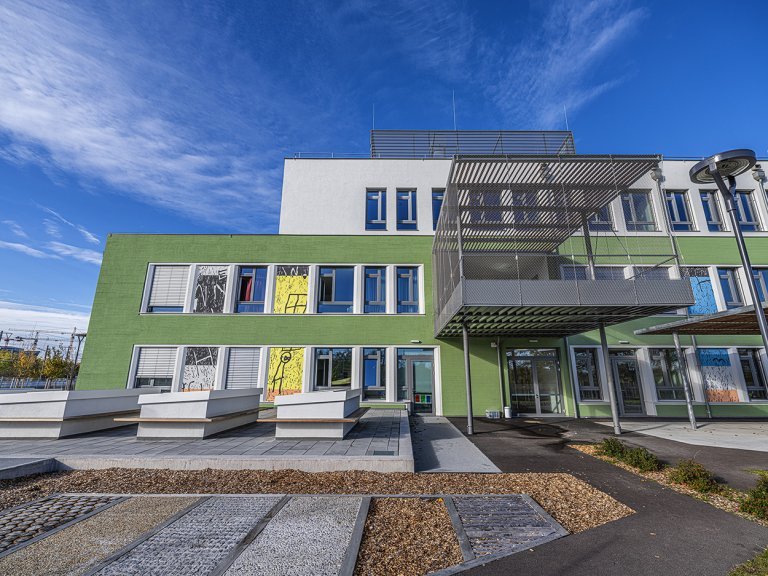 Šis įspūdingas pastatas, kuriame yra pradinė mokykla ir vaikų darželis, sukuria vietą, kurioje švietimas, bendruomeniškumas ir džiaugsmas eina koja kojon. Tai skatina ne tik perduoti žinias, bet ir atsakingai elgtis su aplinka. Daugiafunkcėmis erdvėmis, tokiomis kaip valgomojo zonos, darbo ir treniruoklių salės, bibliotekos ir kt., naudojasi visi.