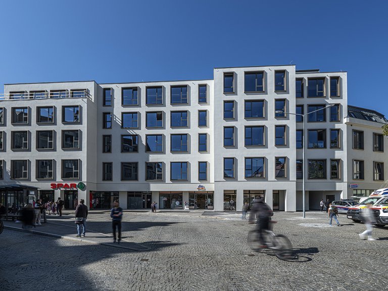 Naujame gyvenamajame kvartale, kuris įsilieja į esamą gyvenviečių struktūrą, dabar siūloma papildoma infrastruktūra su komercinėmis patalpomis ir vaikų darželiu. Bendra žalioji erdvė skersai statybų su medžiais, nedidelėmis aikštėmis, sėdimomis baldais ir įvairiomis žaidimų aikštelėmis siūlo vertingą lauko poilsio erdvę. Tvirtos konstrukcijos talpa yra optimaliai išnaudojama aktyvinant komponentus. André Heller buvo atsakingas už lydintį atviros erdvės planavimą.